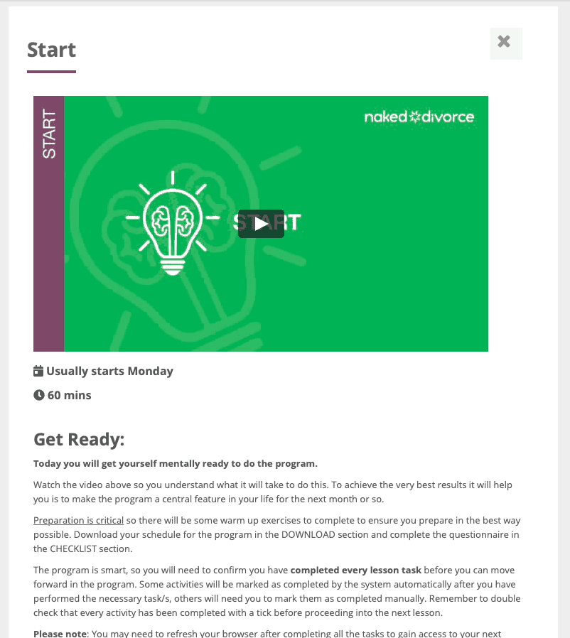 - Access to the online Naked Divorce Program
